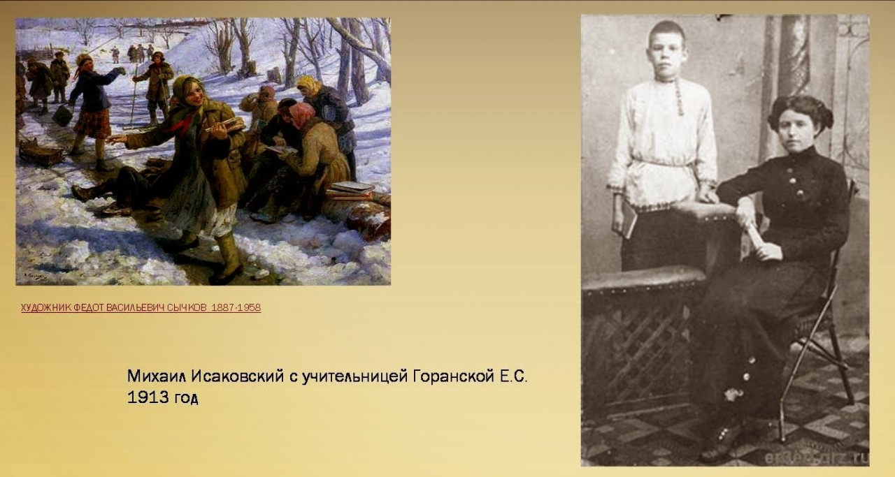 Михаил Исаковский с учительницей Горанской Е.С. 1913 год