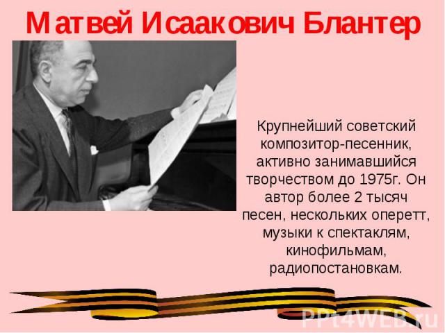 Всего М. Блантер написал чуть ли не 2 тысячи песен.