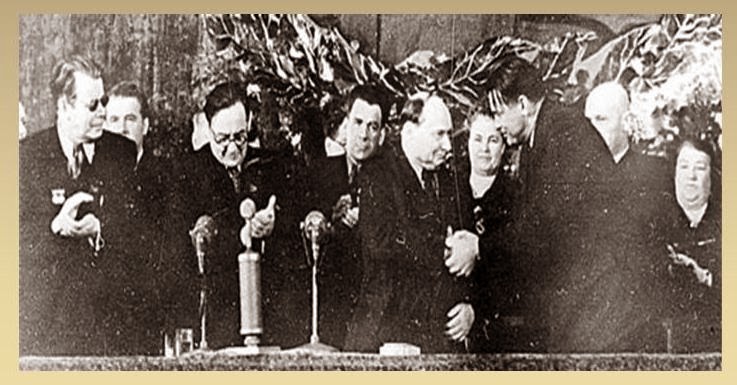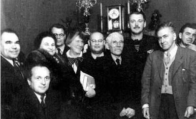 Автор многих песен военных лет Матвей Блантер с артистами ансамбля Прибалтийского военного округа.