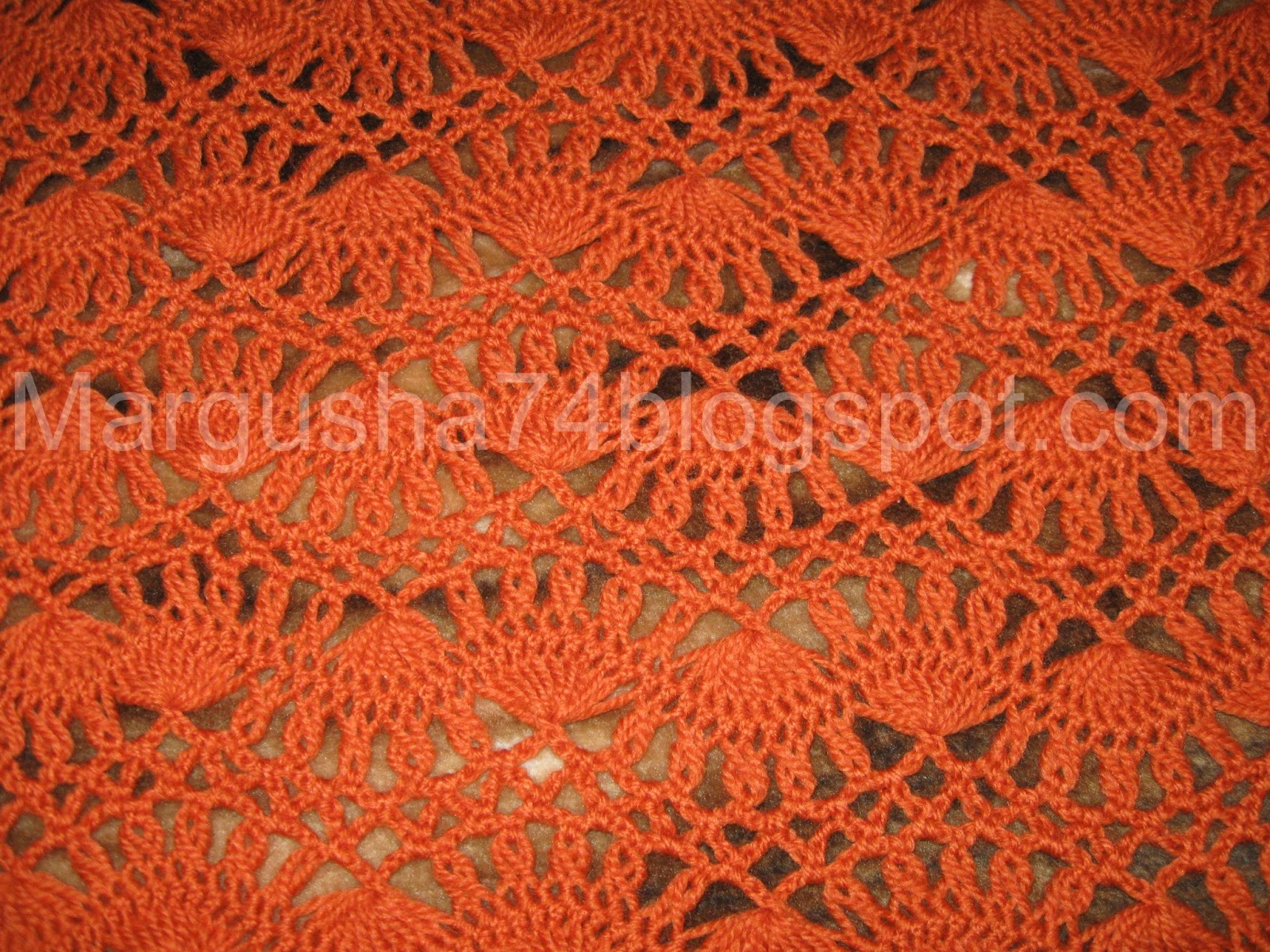 Оранжевый палантин- мой первый опыт вязания на вилке.