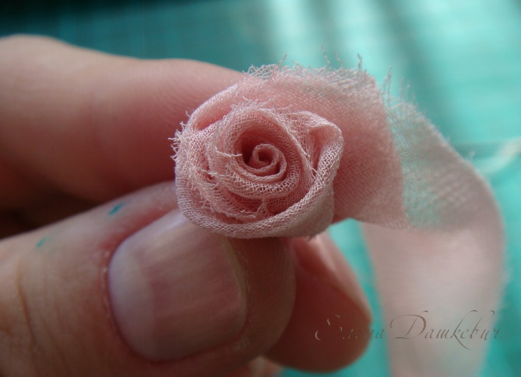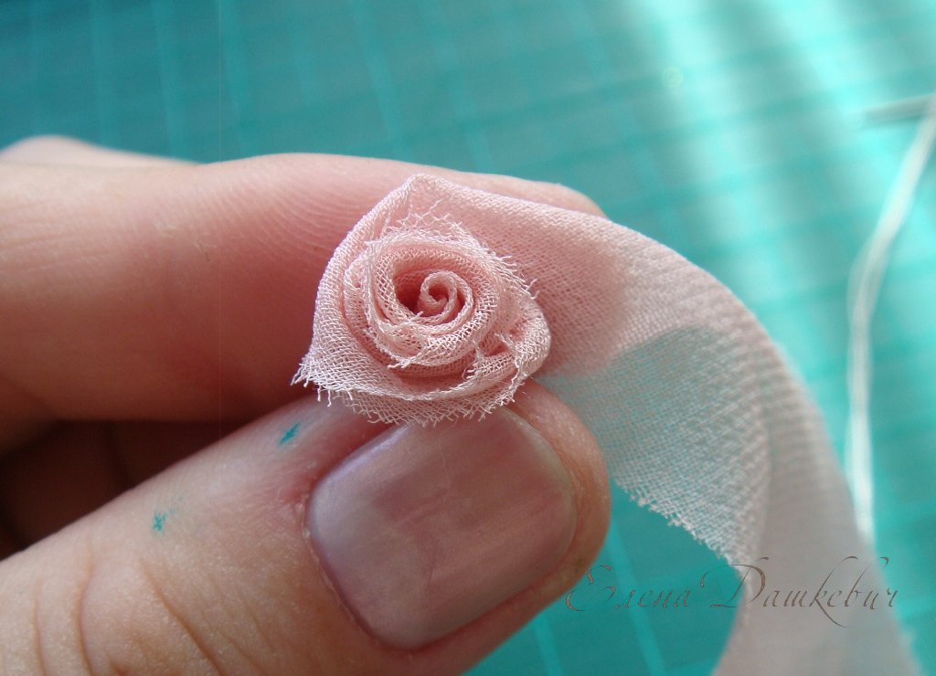 Каждый оборот лучше фиксировать, чтобы ваша розочка потом не расползлась )).