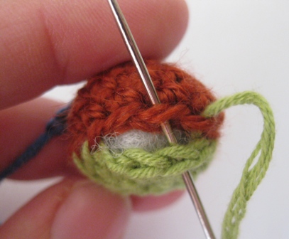 Пришиваем голову к туловищу. Я сделала три круга, пока пришивала.