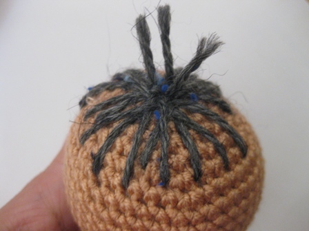 Оставшееся отверстие не закрываем. Оставляем нить для пришивания туловища к голове.