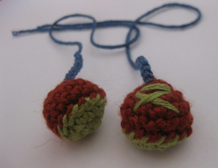 Конец нити прячем внутрь головы. Находим наиболее выгодное место для ушка, цепляем петельку и вяжем в нее: в.п., 4 сбн, сс. Нить обрезаем и ее конец также прячем внутрь.