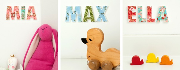 На Западе очень популярен декор детских комнат с помощью букв. Обычно это начальная буква имени или целое имя ребенка. Их вешают на входную дверь или украшают стены. Я собрала подборку разных букв, которые можно сделать своими руками. Ну и просто фотографии для вдохновения.