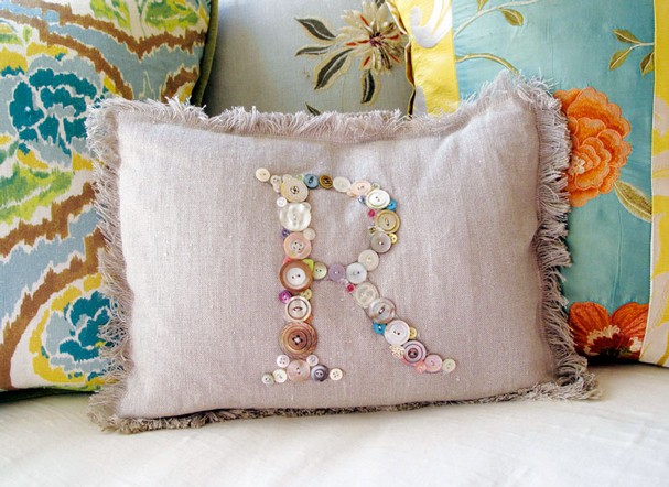Очень красиво смотрятся буквы из пуговок. Они могут быть разноцветными или наоборот, однотонными (вот здесь простой и понятный МК)
