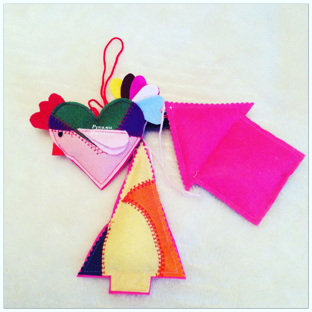 Украшаем на свое усмотрение, но для таких ярких игрушек из кусочков, мне кажется, уже лишнее.