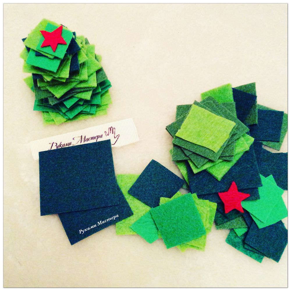 Например, из разных оттенков зеленого фетра или белого нарезаем квадраты разных размеров.