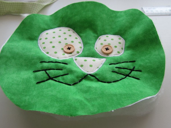 Далее шью мордочку. Все детали аппликаций (глаза, нос) проклеиваю флизелином, тогда при пришивании, все будет ровно, не будет морщиться.