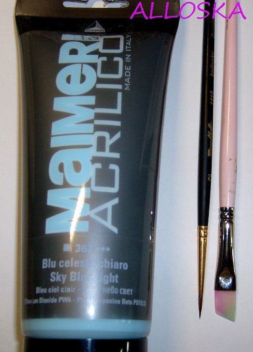 акриловые краски марки Маймери,можно использовать и краски и других производителей,главное,чтобы они были укрывистые
