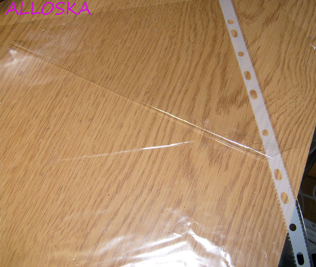 Аккуратно снять пленку с файла и переложить на белую бумагу.