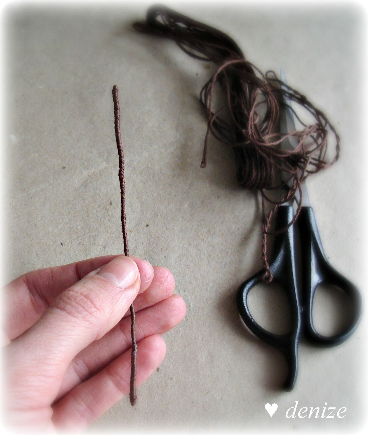 1. На проволоку-основу, предварительно измазав проволоку клеем (у меня Момент-Кристалл) и отступив примерно дюйм от края, начинаем наматывать нитку.