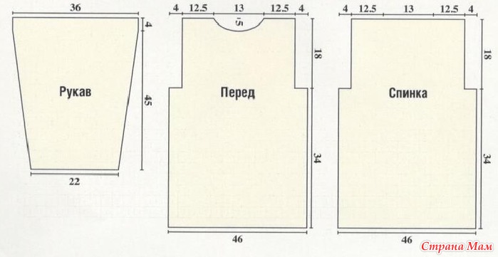 Для расширения рукава в 8-м ряду от начала работы выполнить прибавления с обеих сторон по раппорта, затем в каждом 8-м р. 5 раз по раппорта. В работе = 18 раппортов.
