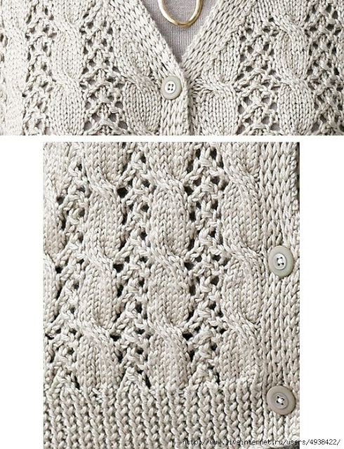 Петли для пуговиц вязать на правой полочке след. образом: 1 лиц.п., 1 лиц.п., 1 изн.п., протяжка, накид.