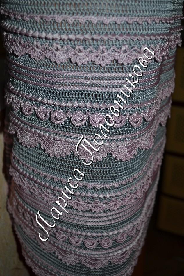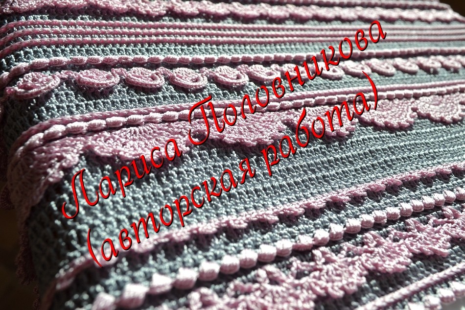 --Основное полотно - столбики с накидом, без накида, где-то за переднюю, заднюю стеночку и прочая. А дальше - арочки с пико, пышные столбики, так называемый попкорн, веерочки и прочая - прям в инете выбираете, узоров и идей множество.