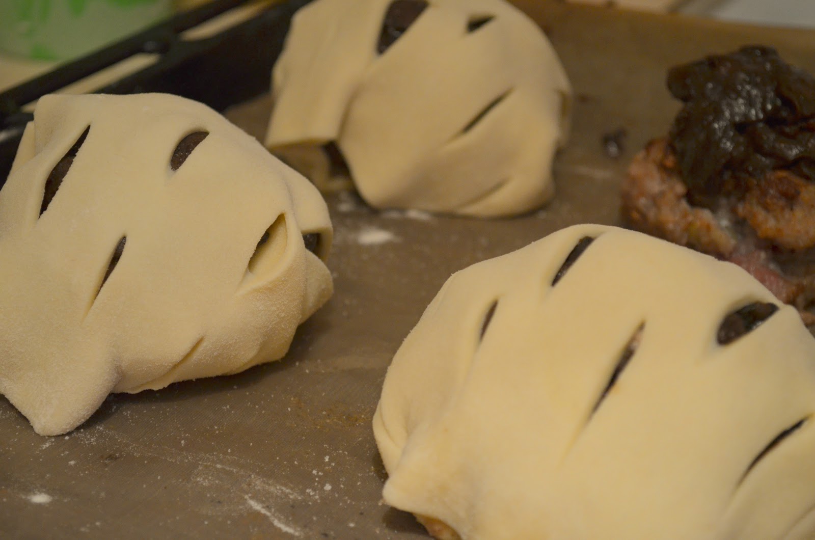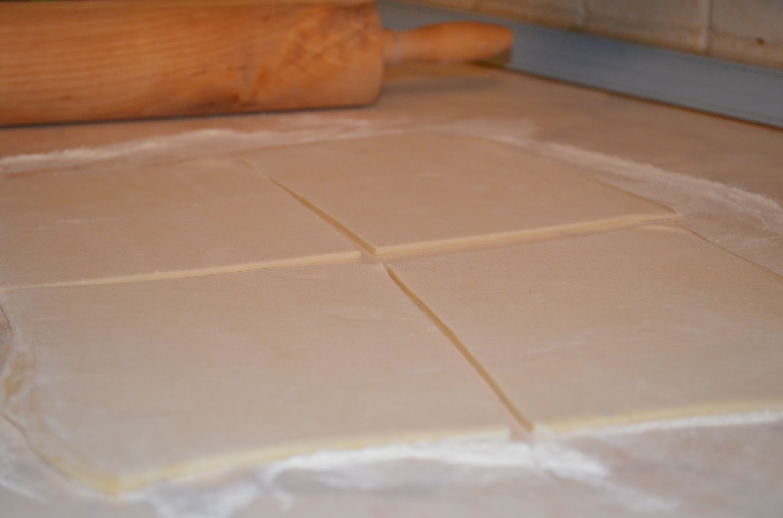 4) тесто раскатать, и разрезать на 8 одинаковых квадратов примерно 15х15 см