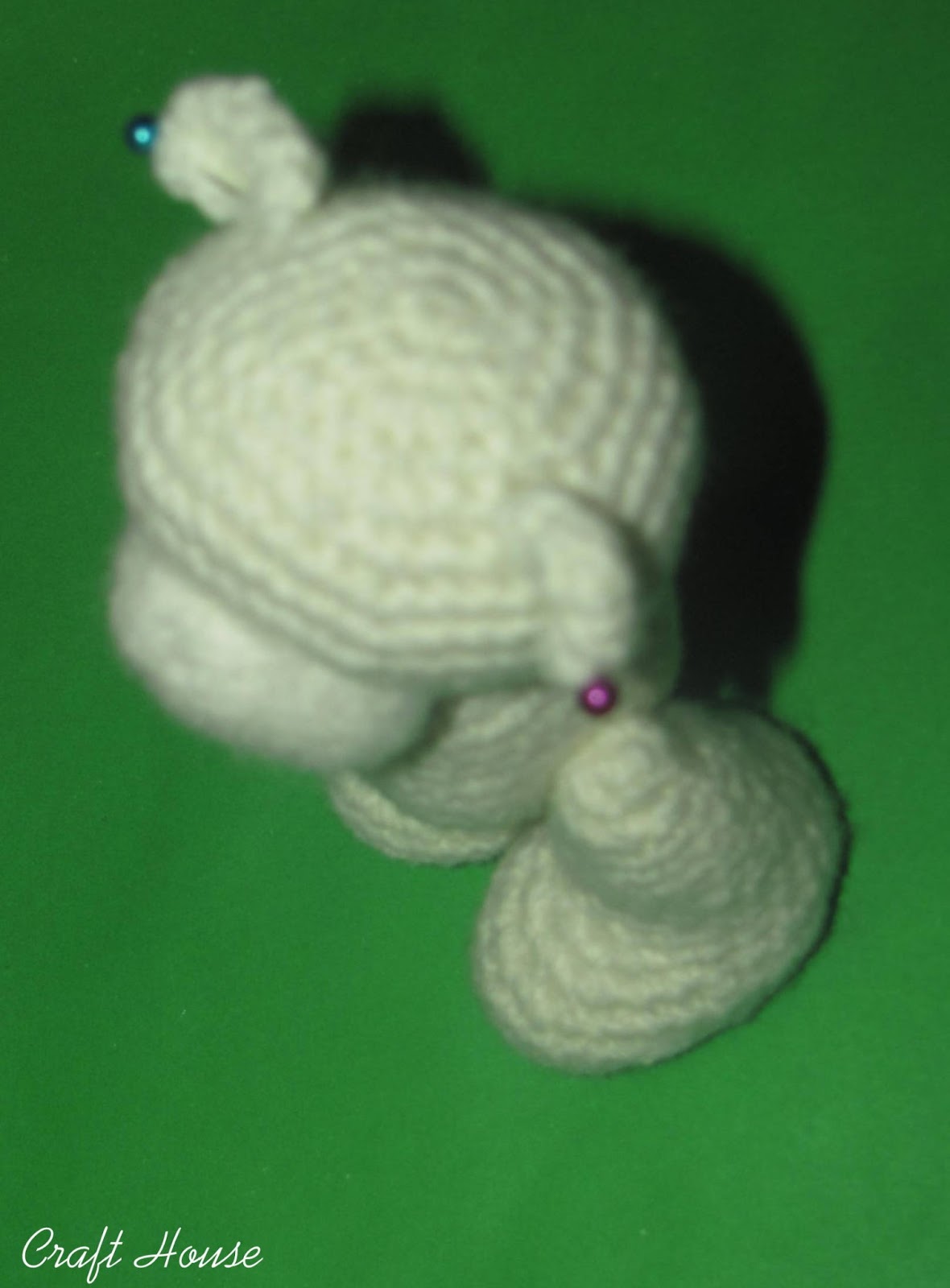 4-5 й ряд: 20 ст. б/н. Набить не очень плотно, пришить. На вязаной мордашке носик можно вышить (нитками типа "Ирис").