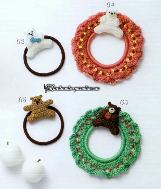 Вяжем крючком резиночку для волос. Схемы вязания забавных и весьма симпатичных вязаных аксессуаров для длинных волос маленькой принцессы и юной леди. Ниже вас ждут идеи создания своими руками резиночки с ежиком, кошечкой, овечками, кроликами, зайчиками, медвежатами, рыбками, а также с домиками и разными цветочками. Вяжите на радость своим модницам!