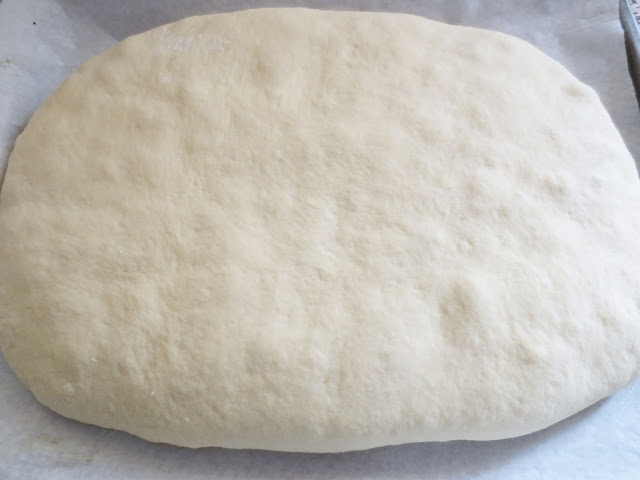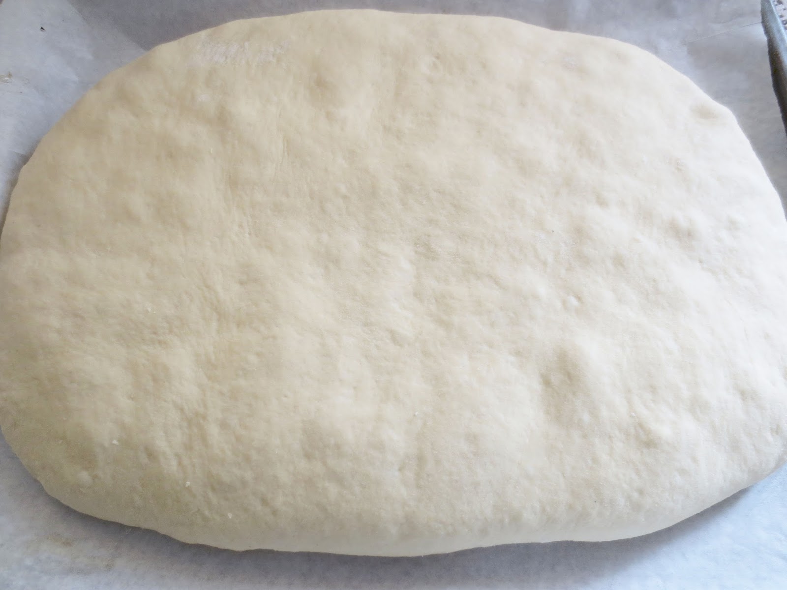 Кефир, соль, яйцо смешиваем в глубокой миске. После этого добавляем подошедшую опару и хорошо перемешиваем. Затем постепенно просеиваем муку, затем растительное масло и замешиваем тесто. Накрываем полотенцем и оставляем в теплом месте на 1 час. После этого нужно тесто обмять и оставить еще на 1 час. Тесто должно увеличится вдвое. Готовое тесто разделить на 2 части.