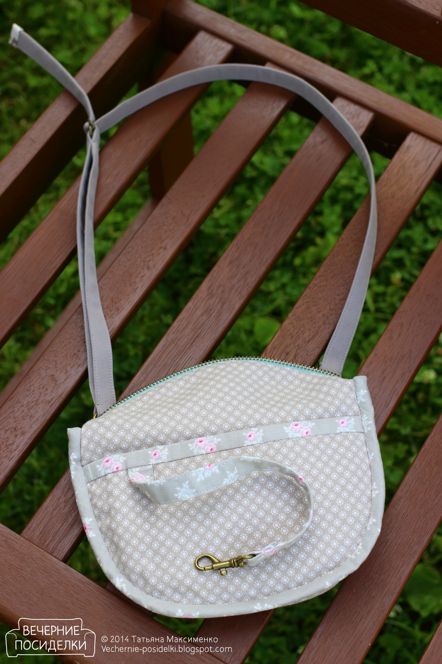 Ну и, наконец, миниатюрная сумочка на пояс. Рассказываю о ней последней, хотя сшила первой. Сумочка женственная и даже романтичная. Можно носить и с джинсами и с платьем.