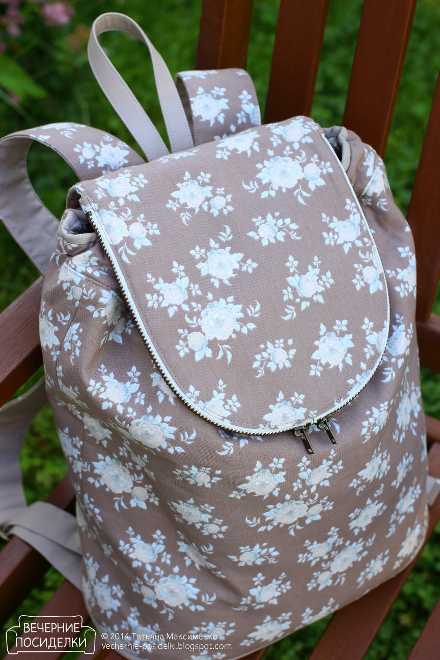 бэгами», хотя может быть их и сейчас так называют? Потом «случайно» повзрослела и уже про бэги не вспоминала, а сейчас сшила, надела и... боже, ну до чего же это всё-таки удобно! Рюкзак классический, но есть у него одна изюминка — молнии на клапане, превращающие клапан в карман. Давно держу эту идею в голове, несколько месяцев как увидела и наконец нашла повод опробовать. А приглянулся мне этот клапан-карман вовсе не из-за возможности положить внутрь бутерброд, хотя и это пригодится, а из-за смутного подозрения (и оно полностью оправдалось), что на текстильной сумке молнии сформируют плотный, добротный, идеально лежащий край клапана. Согласитесь, для сумок из ткани — это более чем актуально, ведь других вариантов-то раз два и обчёлся: бейка, кант,... а больше ничего в голову и не приходит.