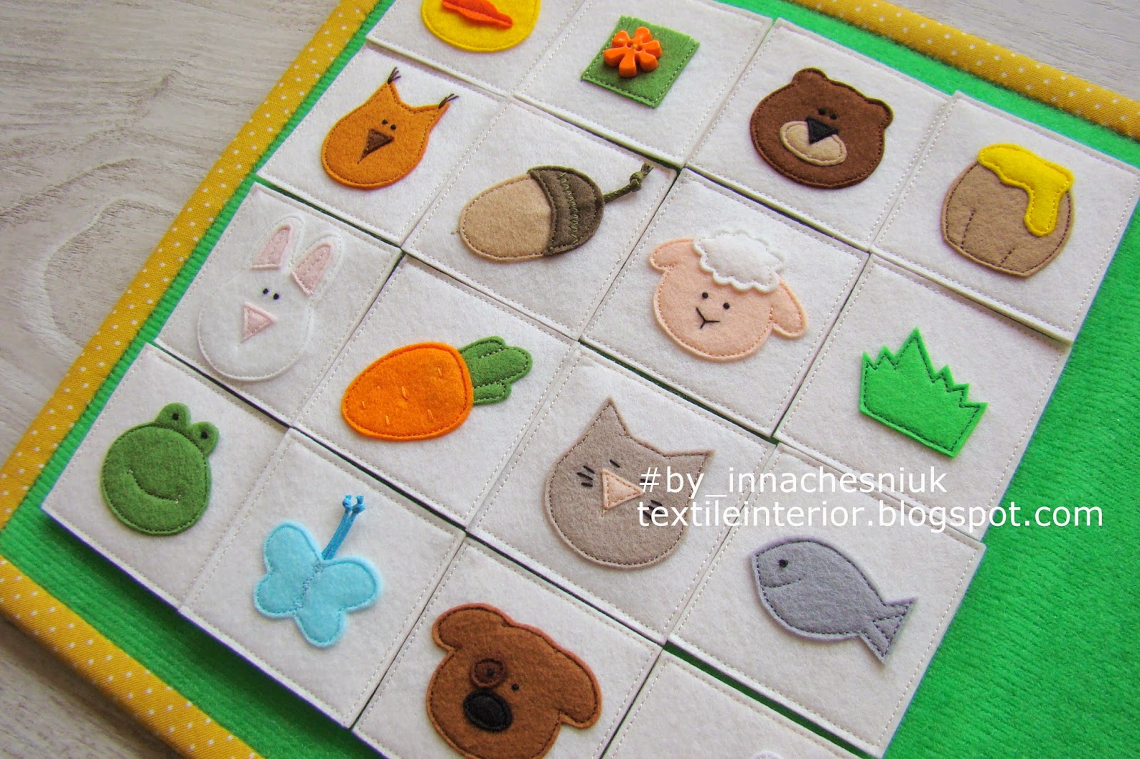 Сегодня новый взгляд на оформление полюбившегося многим мемо "Найди пару живоитных"+ "Кто что ест". Вариация и стилистический эксперимент по модернизации работы и одни из немногих изделий, которые шила в ассортимент, но, тем не менее, уже нашедших своих маленьких любознательных хозяев :)