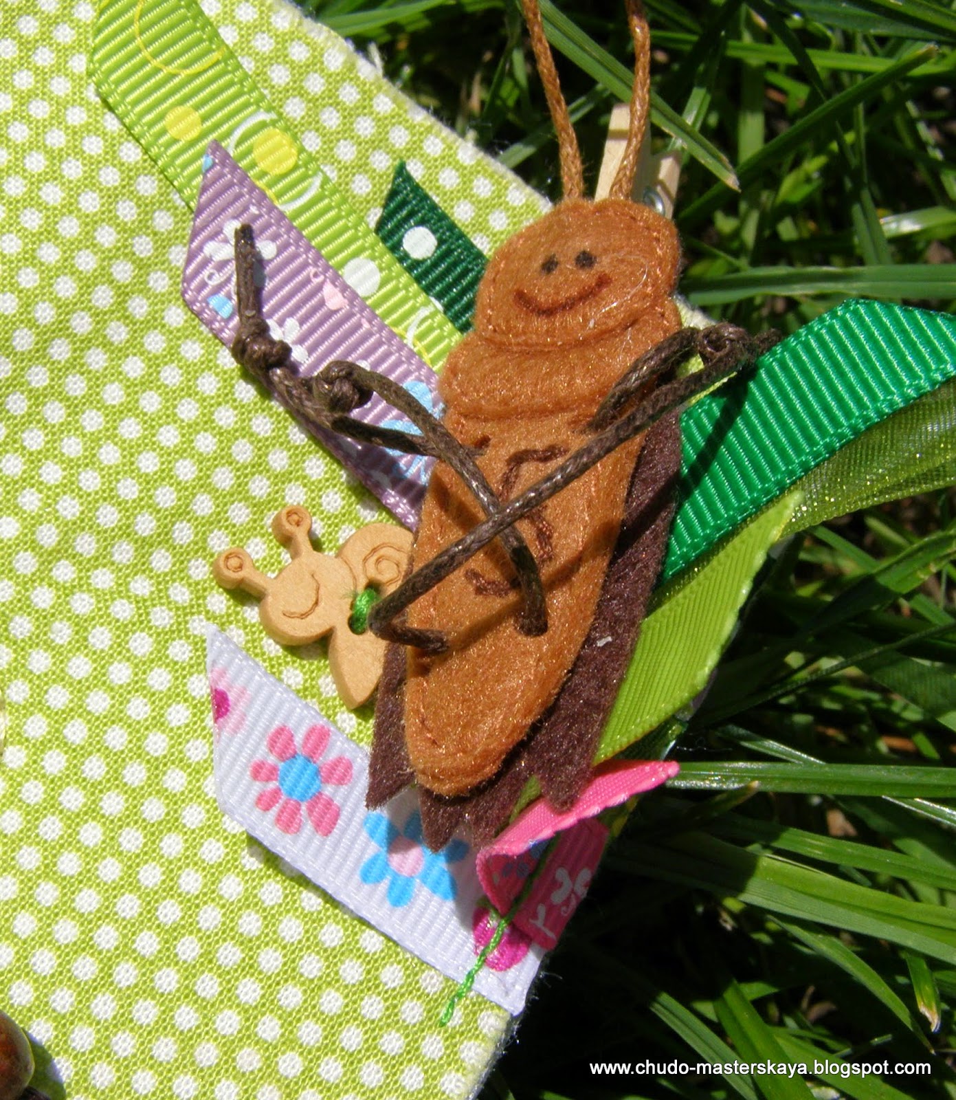 Тараканы и коляска выполнены из жесткого фетра, колеса в колясочке - пуговки, колясочка "ездит" по ленточке.