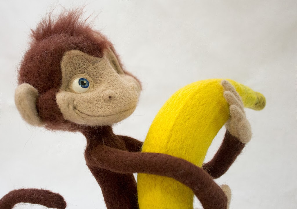 Сегодня расскажу о процессе создания замечательной обезьянки с фруктом в лапах. Вместо фрукта, можно вложить любой другой предмет, так как игрушка выполнена на каркасе из проволоки. Забавная мордашка никого не оставит равнодушной и станет отличным подарком на любой праздник.