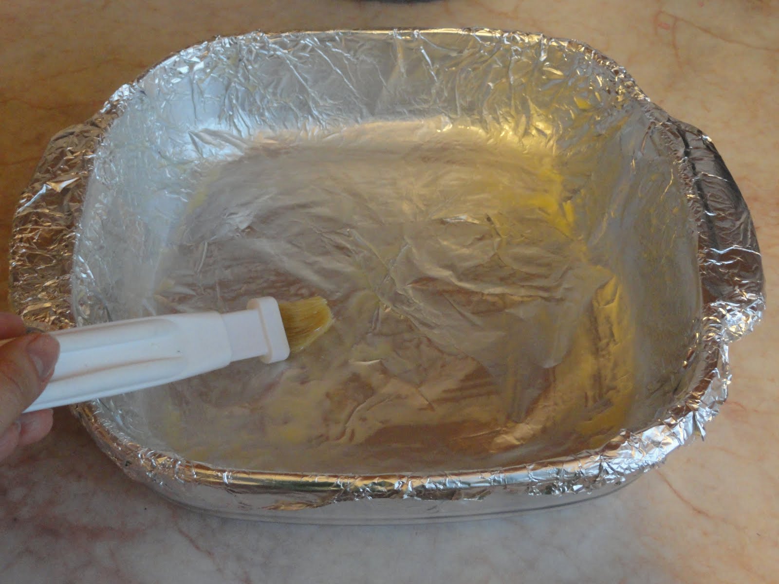 Приготовьте форму для выпечки, застелите ее фольгой или специальной бумагой и смажьте сливочным маслом. Я использовала форму 25*25 см.