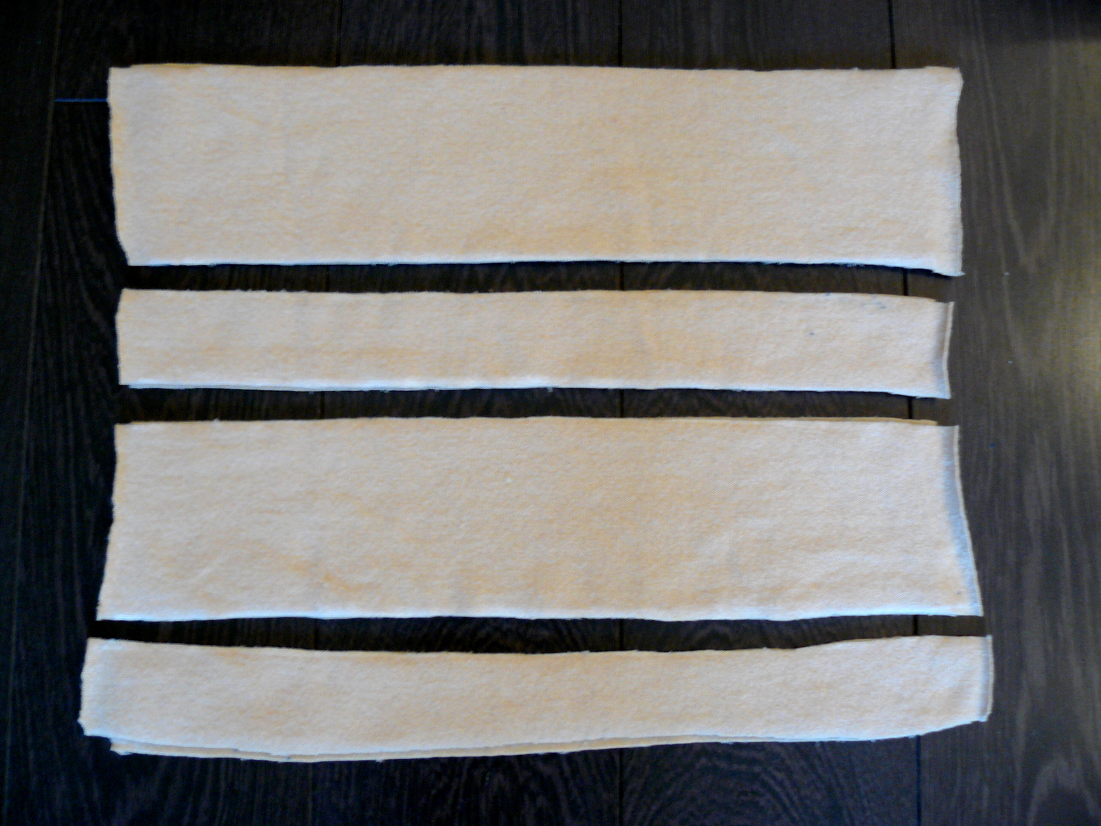 Режем на полоски майку (или второй свитер :)). Ширина полосок, одинаковые они будут или разные - все по желанию. Главное не забывать к ширине полосок прибавлять 1см-1,5см на швы.