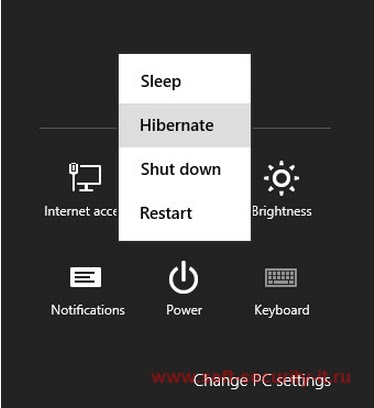 Windows 8 (ориентировался по английской версии) - нажимаем правой кнопкой по пуск, Power Options (опции питания), слева нажимаем Choose what the power buttons do (что отображать в кнопке выключения), прокручиваем вниз, ставим галочку напротив гибернации, сохраняем изменения. Проверяем настройки.