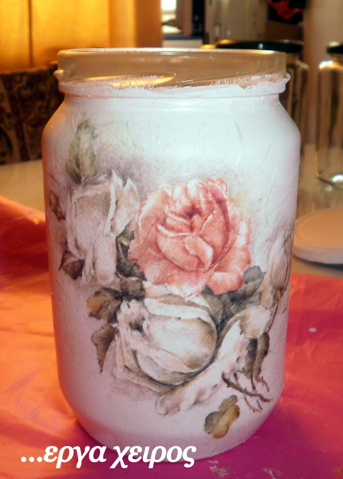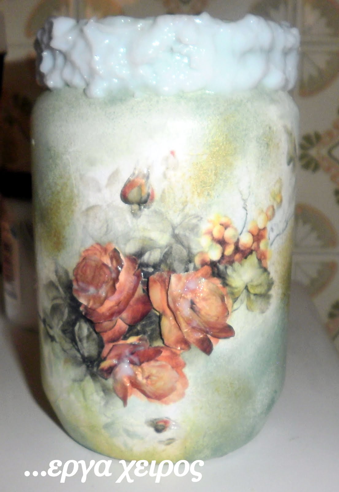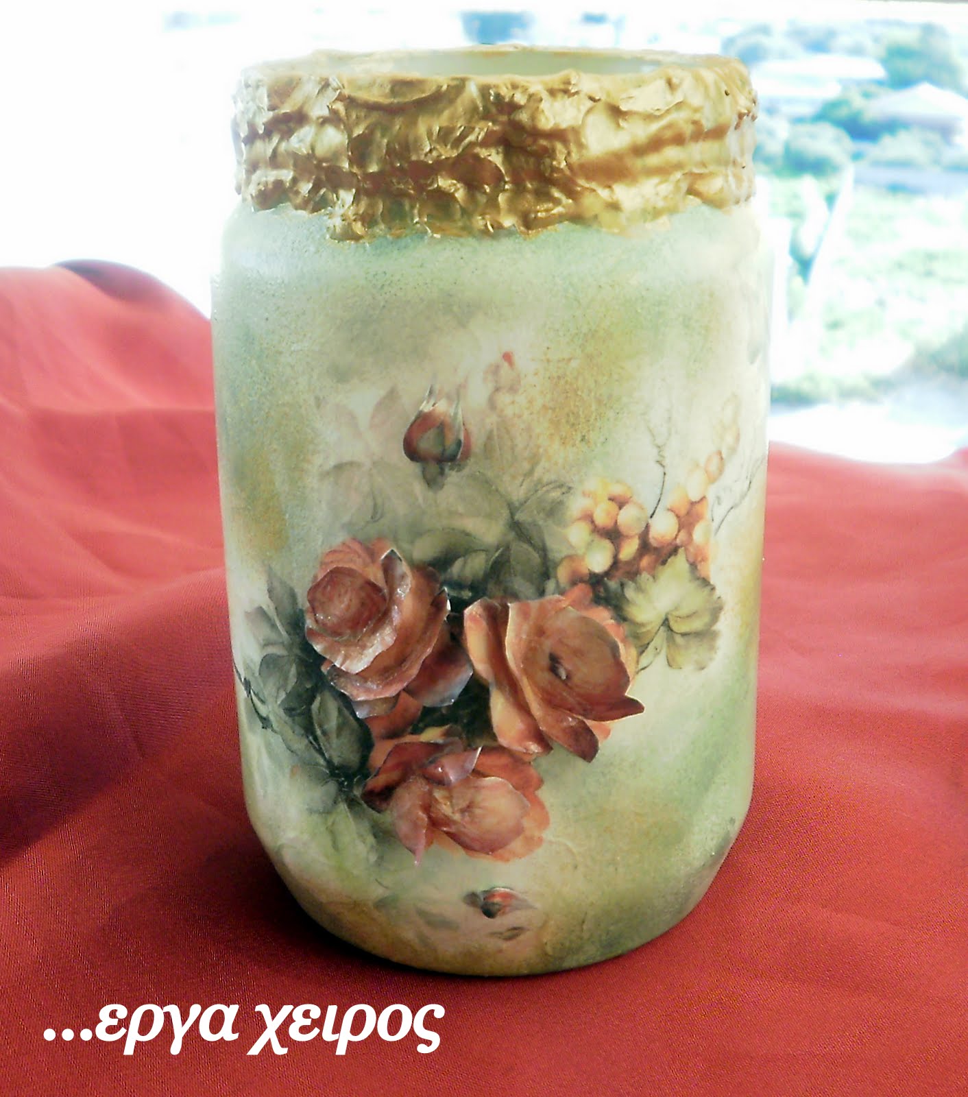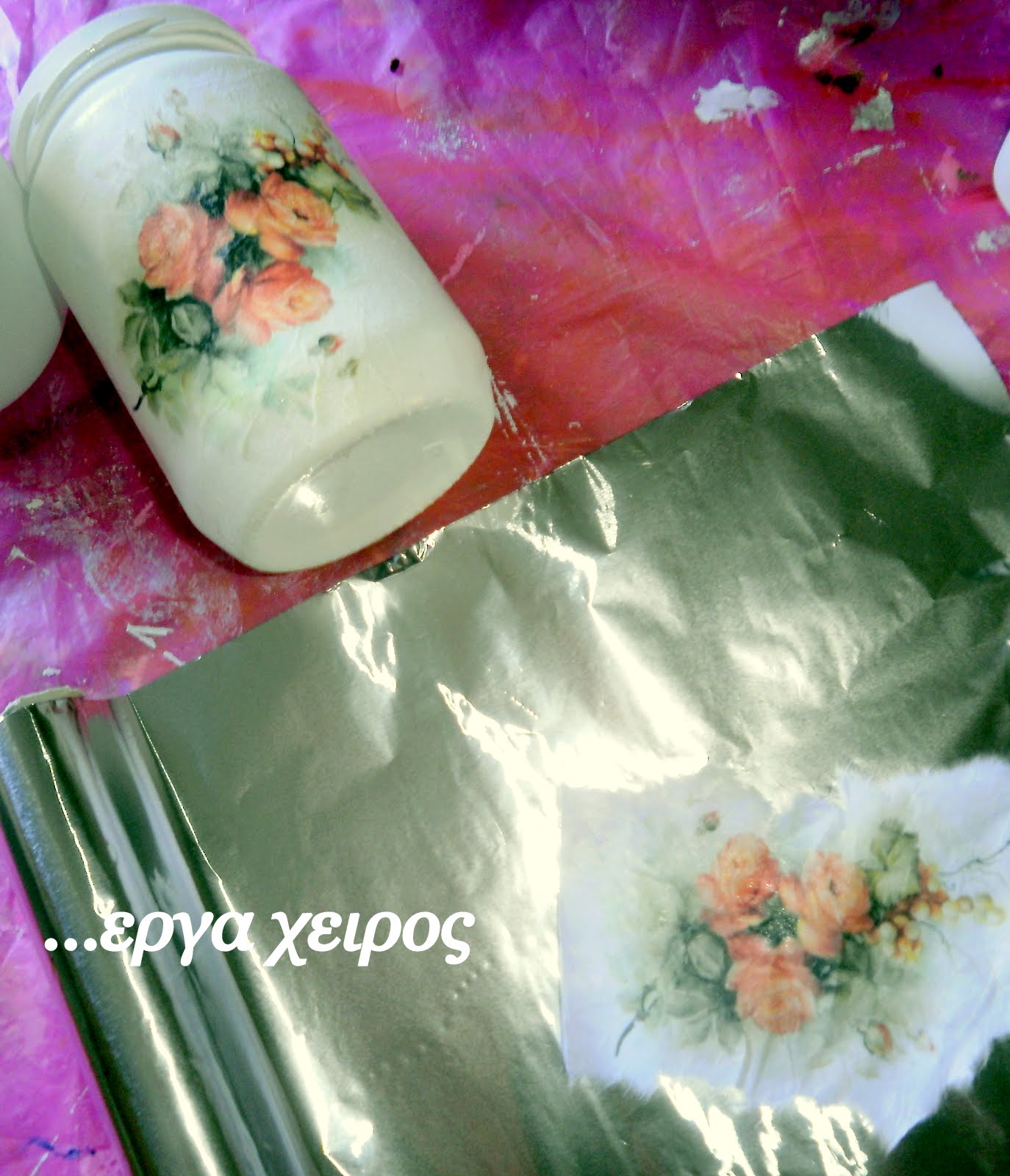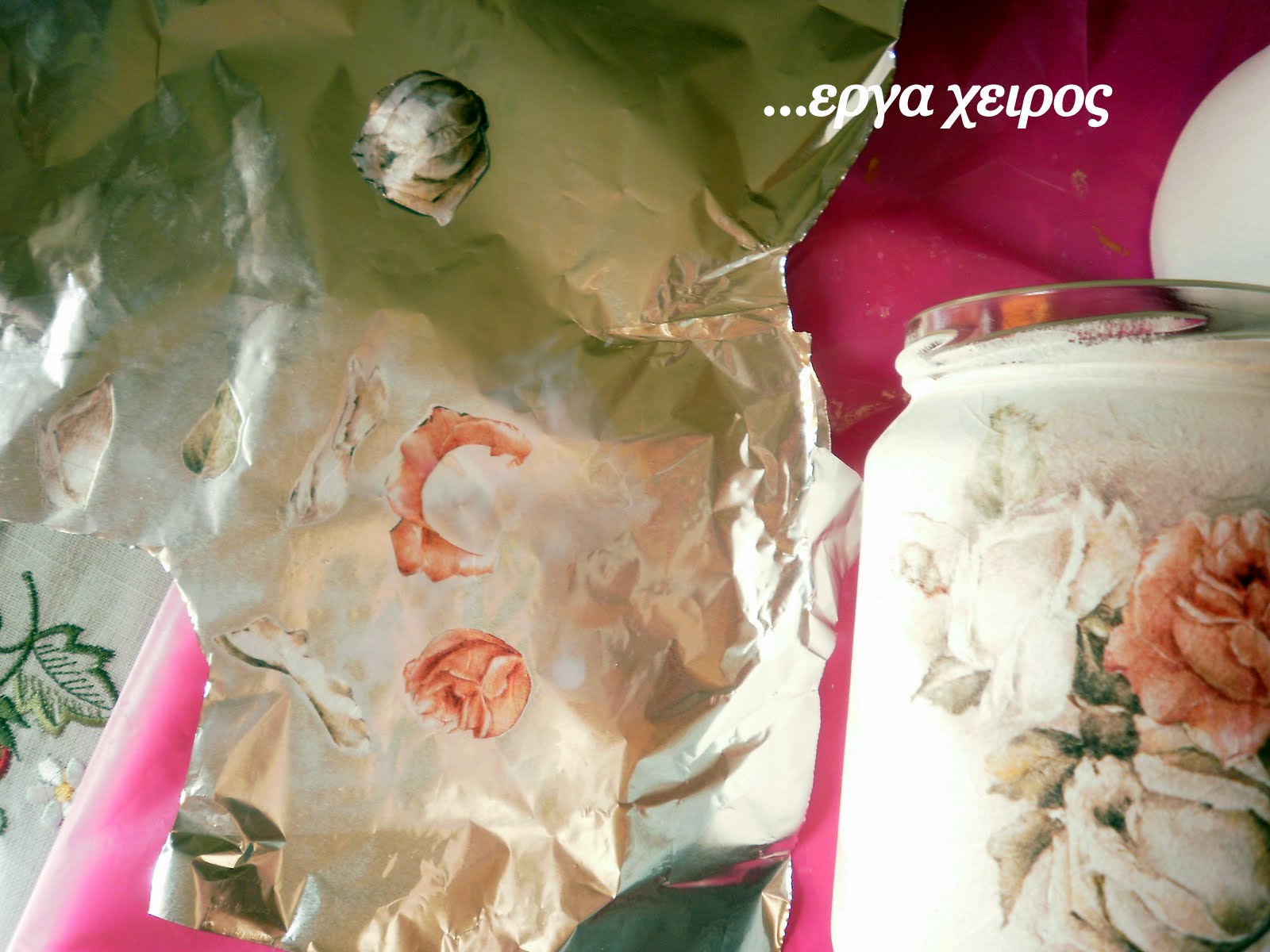 Сегодня я покажу вам, как я делала объемный декупаж банки с медом Я решила поэкспериментировать с фольгой ... и эксперимент удался! !