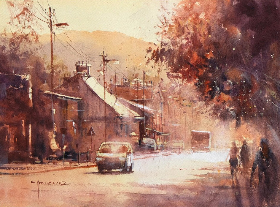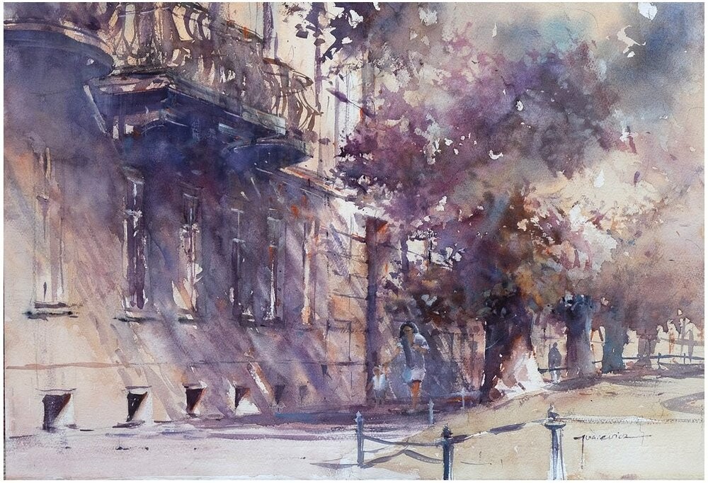 Пабло Рубен Лопез Санз — испанский художник, который достаточно долго работал масляными красками. Затем он перешел на акрил и только после этого открыл для себя акварель. Для мастера ключевое преимущество материала в том, что именно полный набор акварельных красок легко можно взять с собой в дорогу и писать в любой момент, когда настигнет вдохновение.