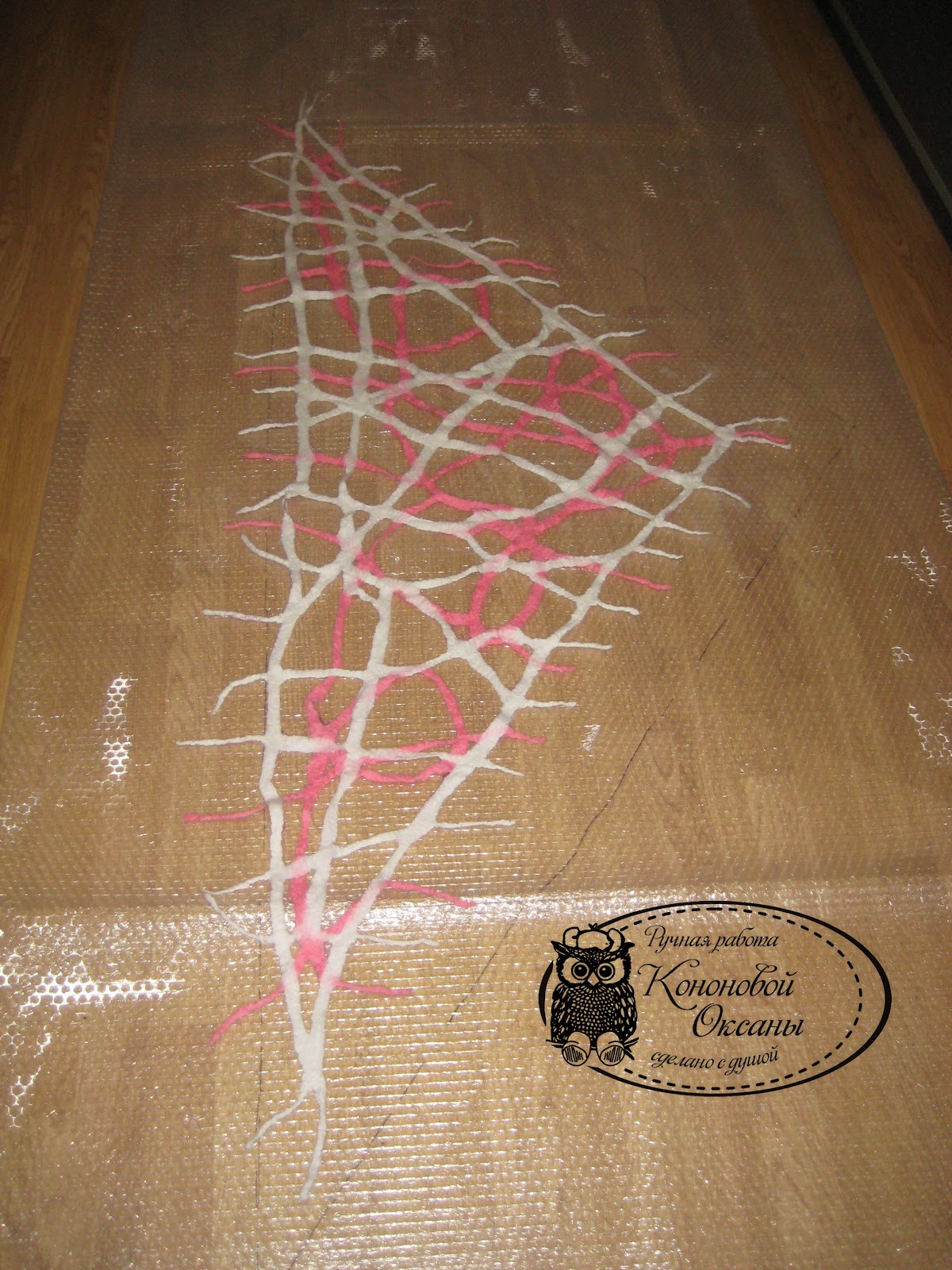 Раскладываем и отпариваем. Сушим в разложенном состоянии. Вот такую усадку дал наш бактус. После валяния его размеры: 180х62 см.