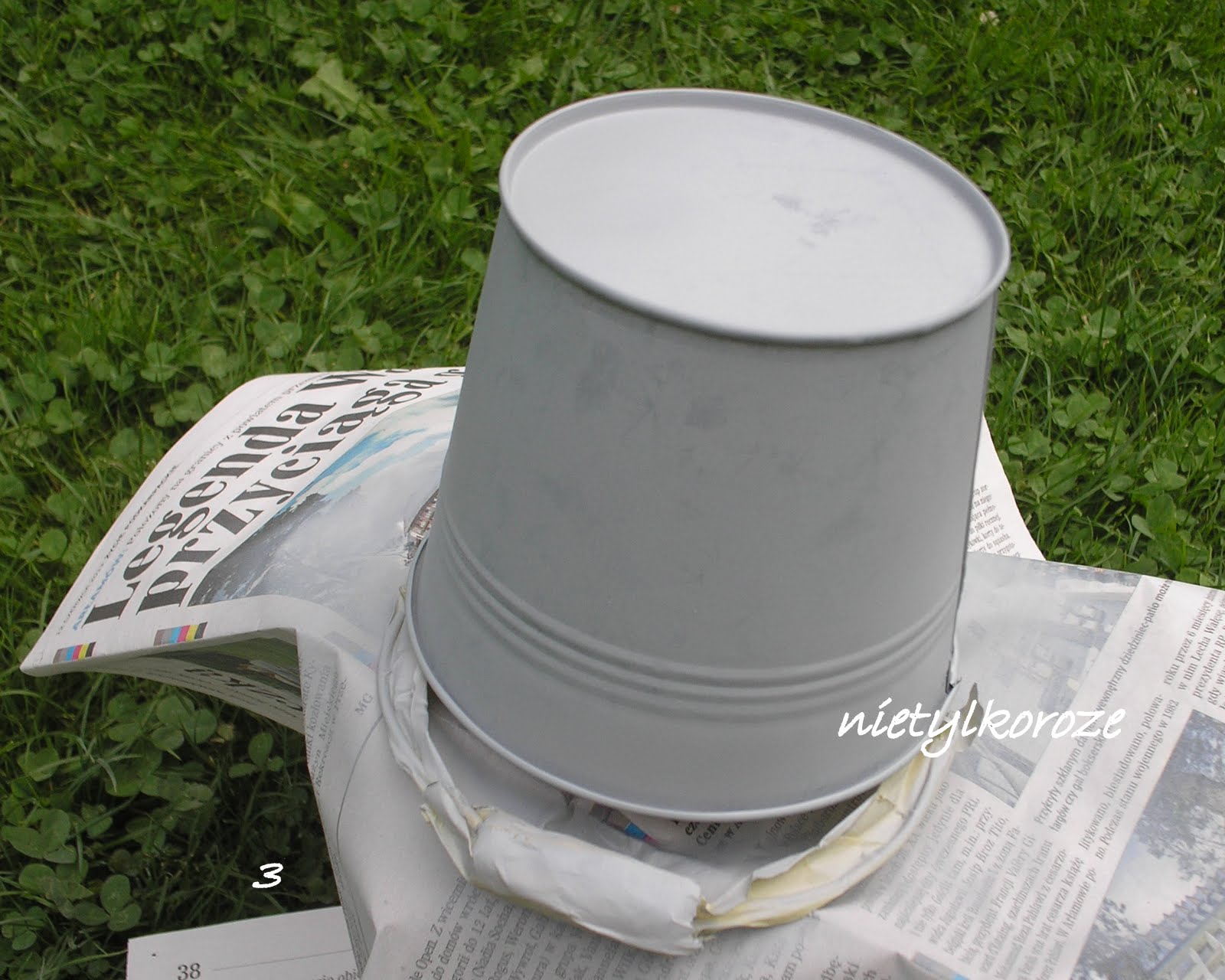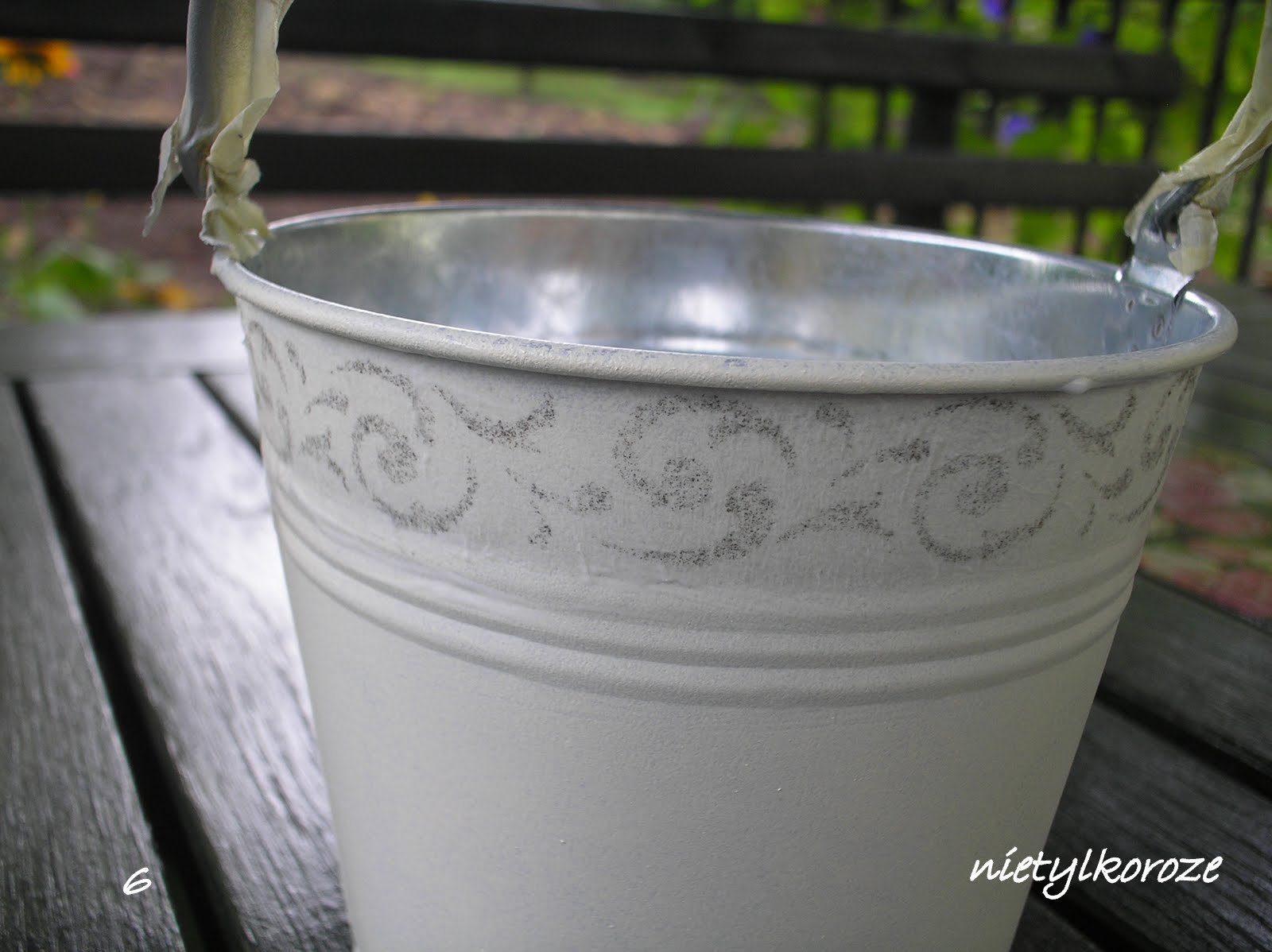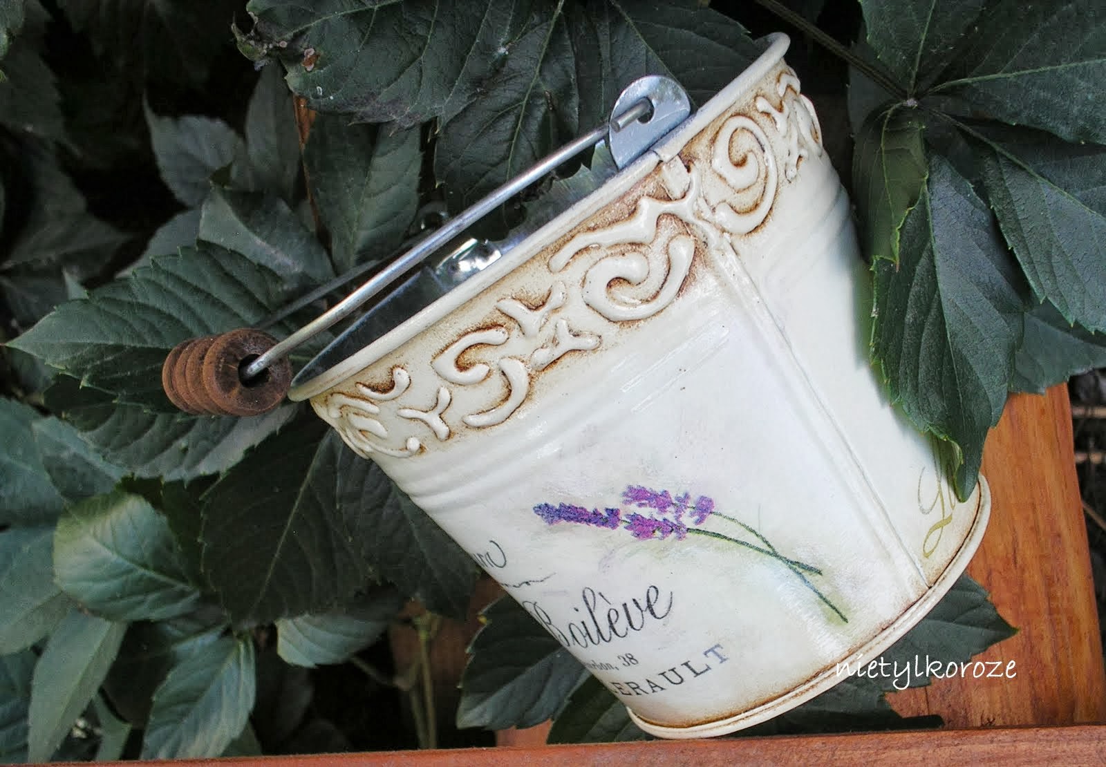 Декупаж металлического ведерка от http://nietylkoroze.blogspot.ru/2013/07/zawijaskowe-diy-i-konewka.html