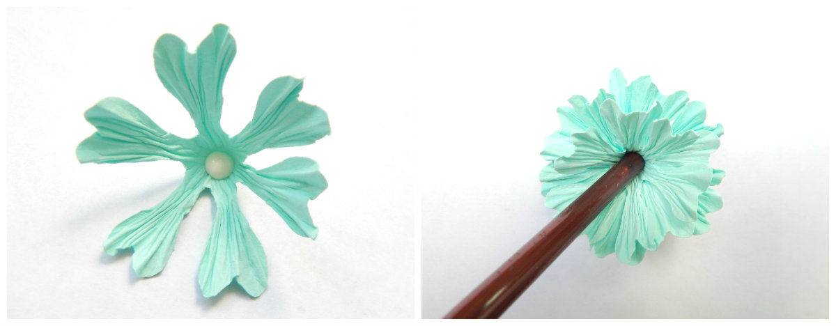 (Кто внимательный, тот заметил, что с маленькими деталями в этом цветочке мы поступаем точно так же, как и в нашей хризантеме.)