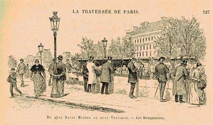 Тогда они были просто книготорговцами-разносчиками. Я бы сказал – книжные шоумены. Пытаясь привлечь покупателей они проявляли все больше изобретательности и со временем стали устраивать публичные чтения, в сопровождении музыкальных развлечений и шоу под открытым небом. Так они бродили по берегам Сены до конца 18 столетия, пока их всех постепенно там и посадили на «рабочие места», где они находятся и по сей день.