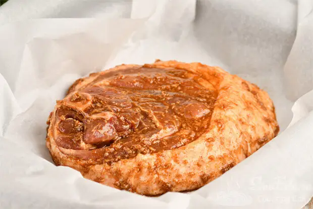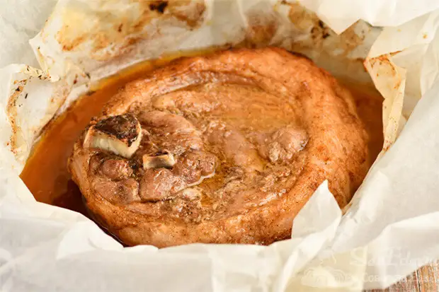 Бумагу плотно заворачиваем и запекаем свинину в разогретой духовке при 150 градусах 1 час 45 минут.