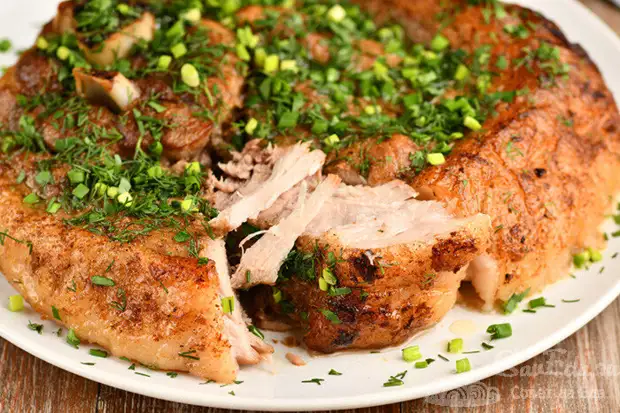Свинину посыпаем зеленью и подаем на стол. Аромат у нее просто замечательный.