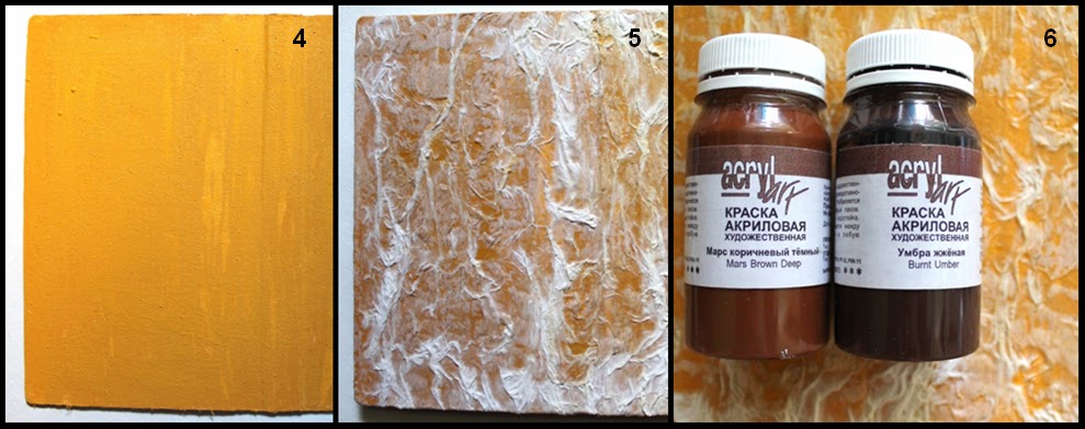 4) акриловые краски (марс коричневый темный, умбра жженая, золото)