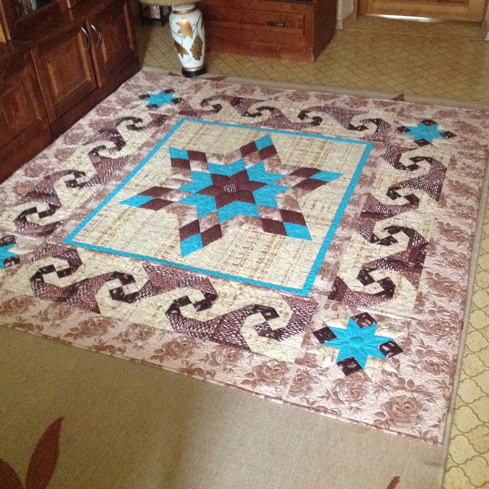 Первую неделю я покорно ждала окончания ремонта, заканчивала всякие мелочи, разбирала завалы тканей и прочего добра, в общем наводила порядок. Потом начала потихоньку, не спеша шить верх, потом помаленьку стегать стала и это все без нормального стола (единственный большой стол был в кухне, а там ремонт). Так и дошила изделие, а тут и с ремонтом дело к концу подошло. Сразу два радостных события, окончание ремонта и окончание работы над одеялом, и еще вопрос, какое событие меня больше порадовало, даже учитывая, что все свои работы я очень люблю и всегда радуюсь, когда заканчиваю изделие и отправляю его новому хозяину.