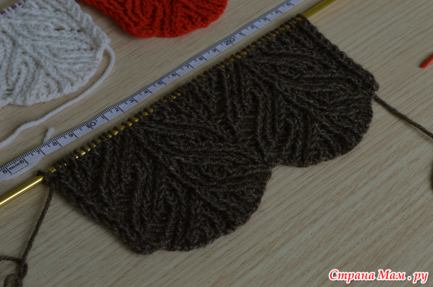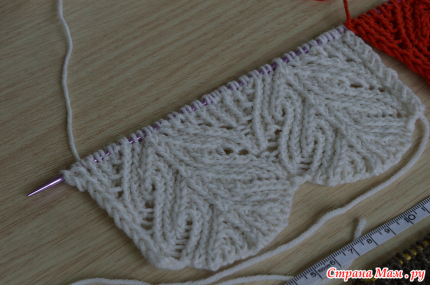 5 ряд... кром, изн, скр, изн, скр, изн, накид, скр, изн, скр, изн,2 вместе лиц с наклоном в лево, изн, скр, изн,2 вместе лиц с наклоном в право, изн, скр, изн, скр, накид, изн, скр, изн, скр, изн, кром