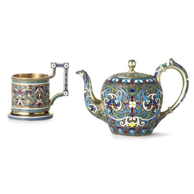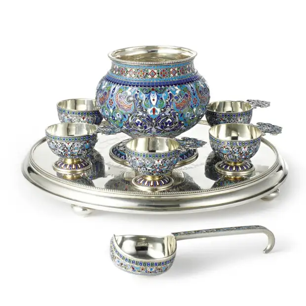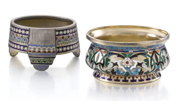 Русские эмали второй половины XIX века. Серебряные и позолоченные изделия в псевдорусском стиле вошли в моду в царствование императора Александра III. Их дарили друг другу обеспеченные господа, в основном дворяне, купцы и чиновники. После революции большевики сочли, что большая часть подобных предметов не представляет исторической и культурной ценности, так как является всего лишь буржуазной модой на все «народное». Как и наследие Фаберже, эти эмали распродавались на Запад, поэтому сегодня их можно встретить в ассортименте различных аукционных домов, в музеях и в частных коллекциях за рубежом.