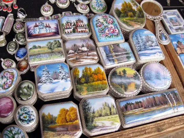 Техникой финифти расписывают шкатулки, иконы, украшения и многое другое, и смотрится это конечно потрясающе.