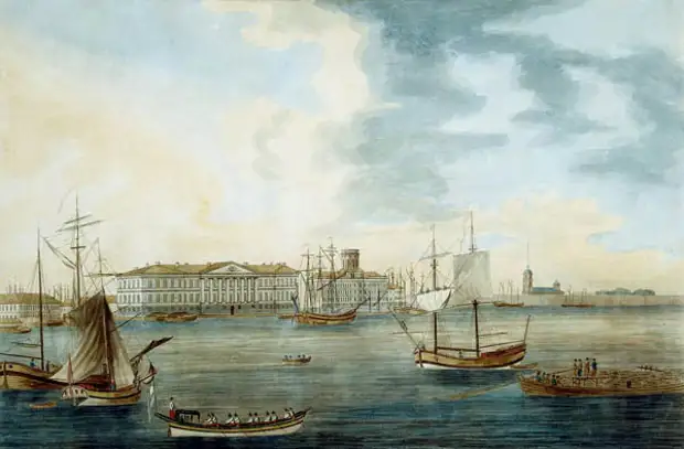 Малтон, Томас Старший - Вид с Невы на набережную Васильевского острова у здания Академии Наук