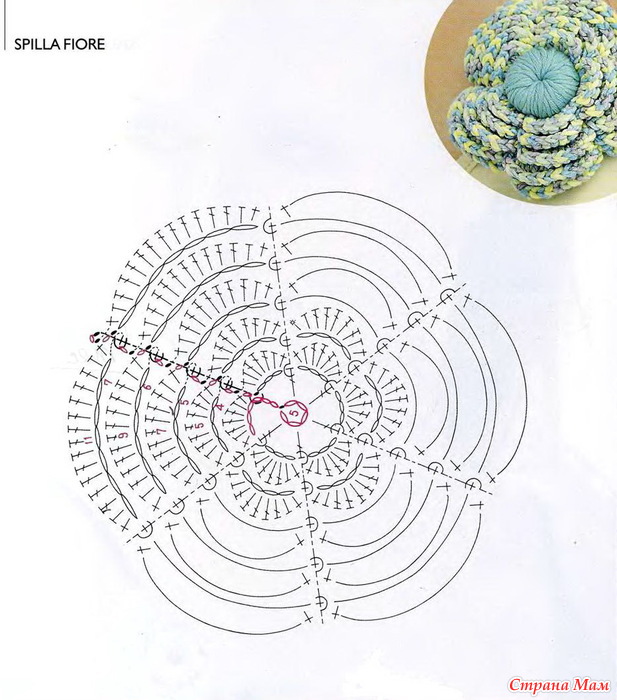 Повторяем от * до конца ряда (т. е. вяжем *3 в. п., ст. б/н в среднюю петлю арки, 3 в. п., ст. б/н в средний ст. с/н пред. ряда*). В конце ряда вяжем 1 в. п. и 1 ст. с/н в последнюю петлю ряда.