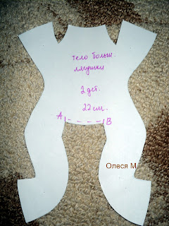 Первая игрушка у нас зеленого цвета, лягушка. Я сделала двух- побольше и поменьше. С ними можно учить такие понятия - больше-меньше, тяжелее-легче. Выкройку можно перерисовать прям с экрана, увеличив до нужного размера или нарисовать от руки. Расстояние АВ не зашиваем для набивки.