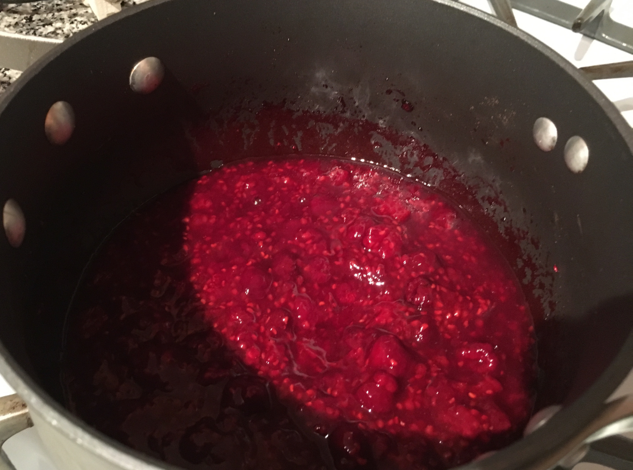 Пока печется запеканка, делаем малиновый соус (по желанию).