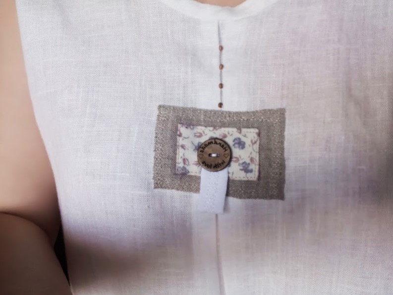 И по бокам маленькими нашивками и маленькими деревянными бусинками.