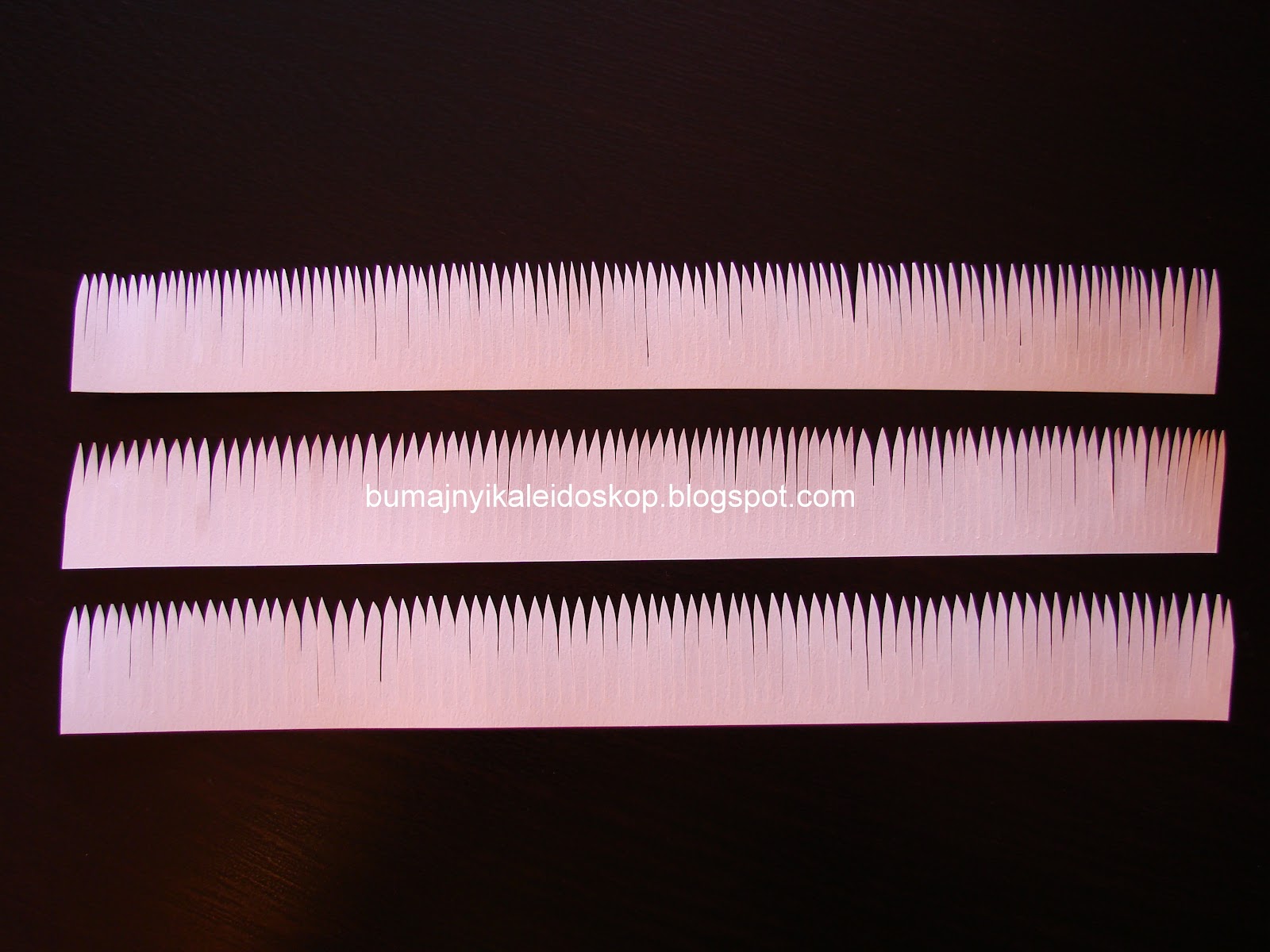 Нарезаем заборчиком ленты шириной 3 см., не дорезая до края 5 мм.